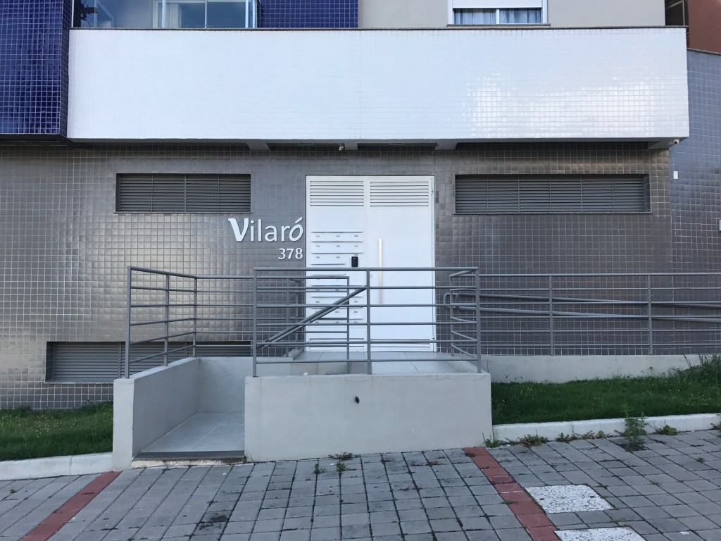 No residencial Vilaró, edificação de 8 pavimentos com 25 apartamentos, o projeto de modificar o acesso foi debatido e o projeto construído junto com o condomínio e o síndico. A decisão foi mais radical, o edifício possuía dois acessos de pedestres, um através de uma rampa com acessibilidade e o outro, mais direto, através de uma escada. A ideia foi isolar o acesso que possuía escada e valorizar o acesso pela rampa, um pouco deslocado do centro do lote. Isso foi feito para criar um pátio, cercado de vidro, junto ao passeio, aproveitando uma área gramada que existia e não era utilizada anteriormente. Assim, a própria escada que dava acesso ao prédio anteriormente, hoje dá acesso ao pequeno pátio com bancos.