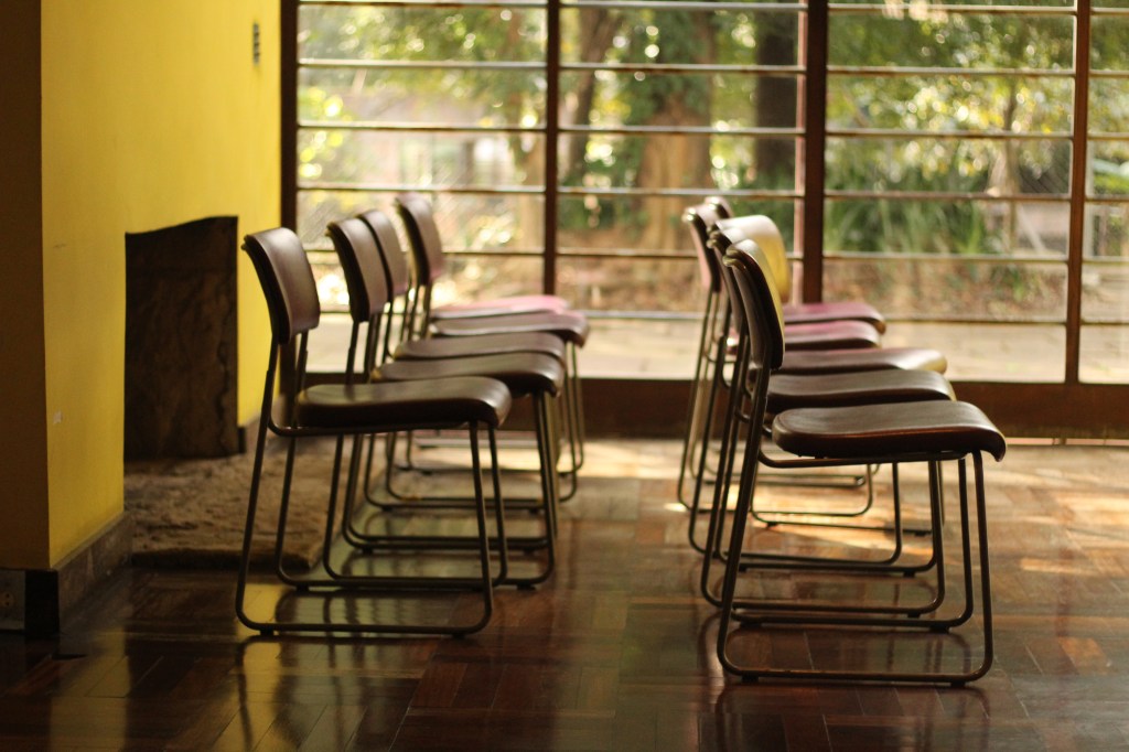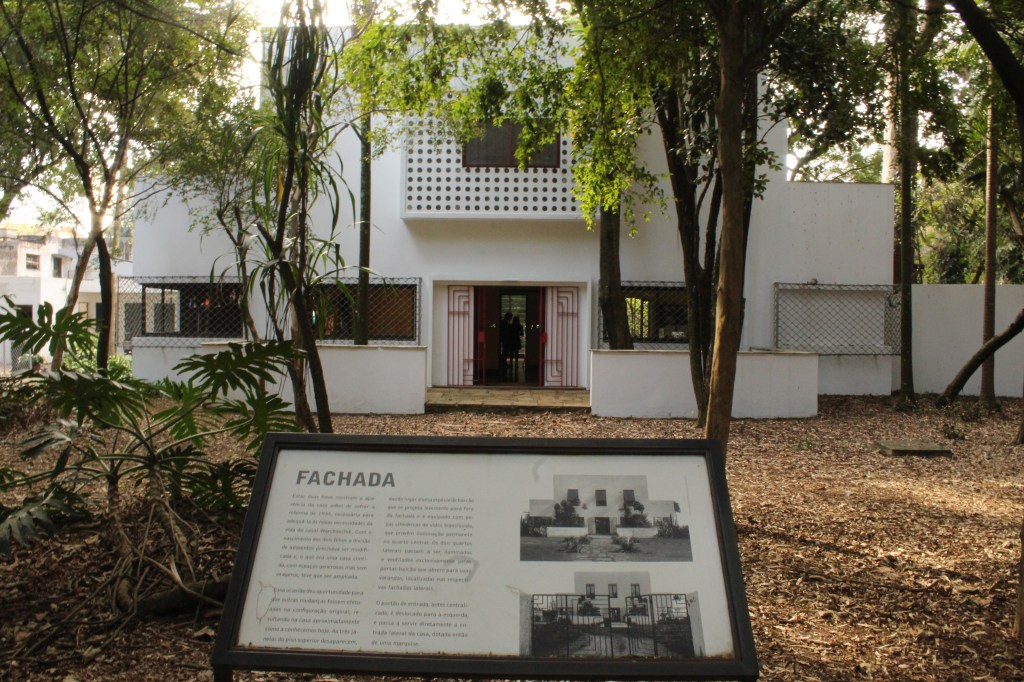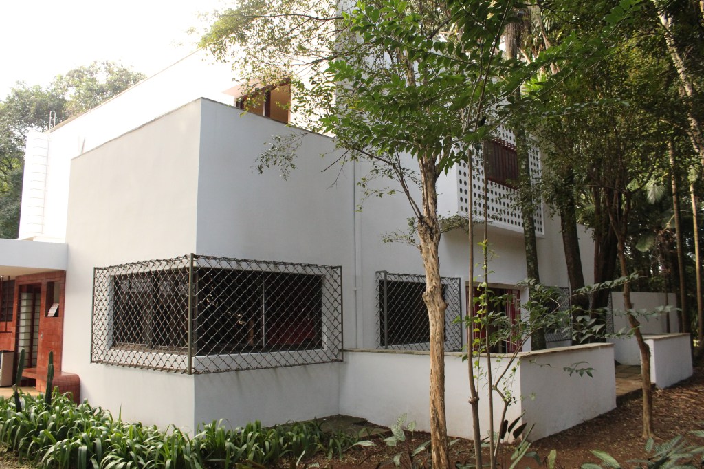 A segunda casa que visitamos era do Arquiteto Vilanova Artigas. Artigas é, talvez, a principal referência na arquitetura moderna paulista, foi professor da FAU-USP e possui uma grande produção de arquitetura. A casa que está aberta a visitação é a segunda residência do arquiteto, projetada em 1949, e que fica localizada no bairro Campo Belo, em São Paulo. A residência é pequena, implantada em um lote amplo, que abriga inclusive a primeira casa do arquiteto. A composição subtrativa se dá por um volume prismático único, marcado pelo telhado borboleta com platibanda em concreto e pela subtração de um volume, em uma das extremidades, no térreo, que dá lugar a um pátio coberto muito interessante e ao escritório, localizado em um volume descolado do chão e que acompanha a inclinação do telhado. Vale a pena conhecer e visualizar.