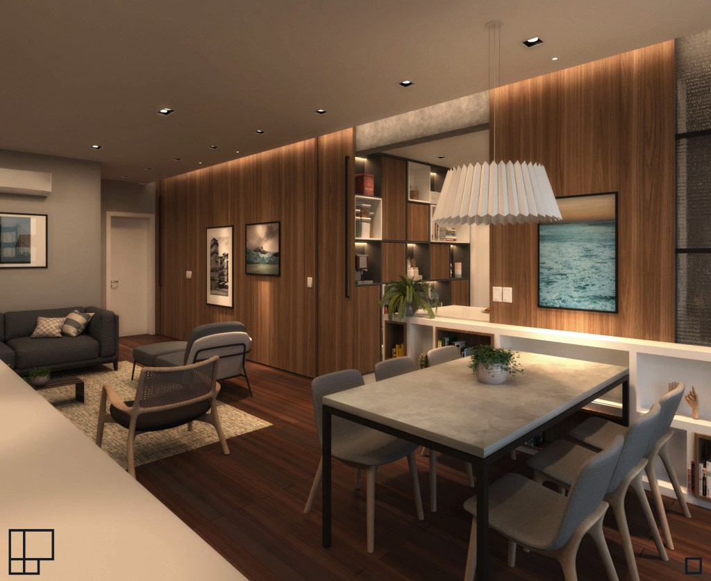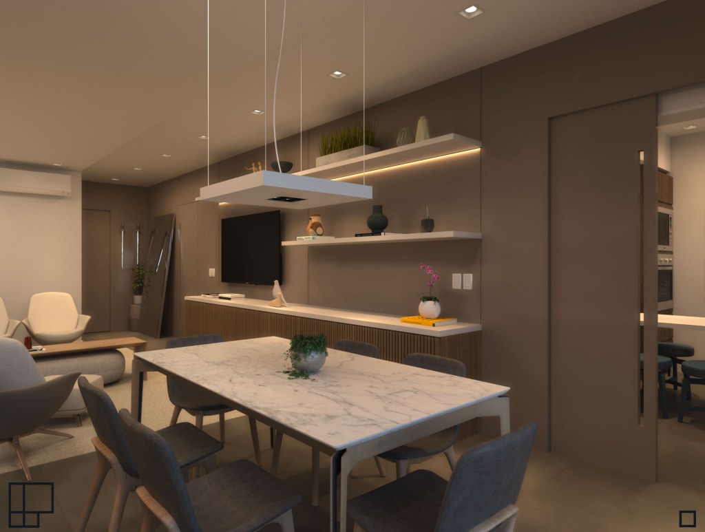 Dentro desse processo, tem sido comum fazermos personalização de apartamento em edifícios projetados por nós. Esse processo, muitas vezes é indicação da própria construtora, ou mesmo uma escolha direta dos clientes, já que gostaram do projeto do edifício a ponto de escolherem ele para morar.