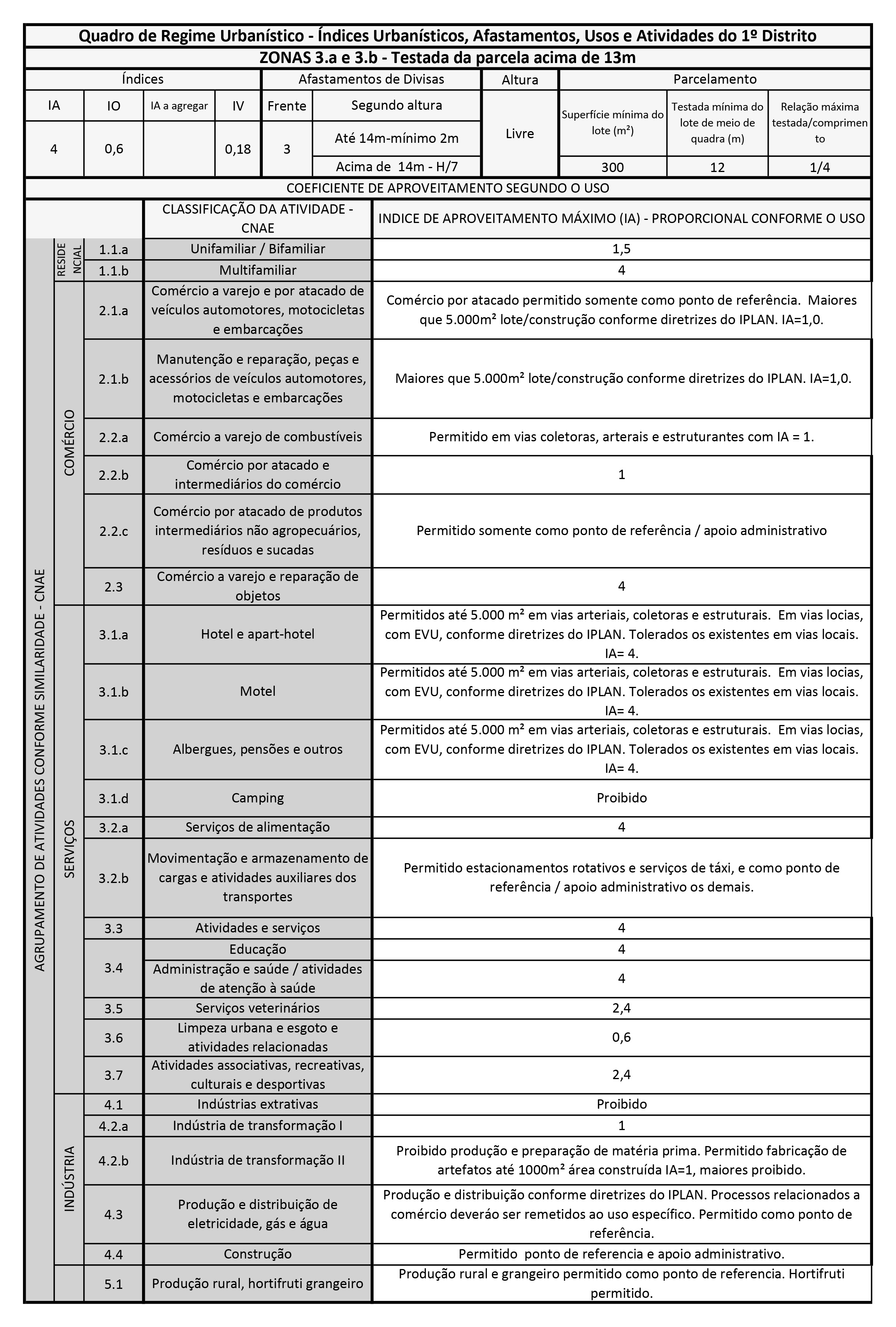 QRU zona 3.a e 3.b – Testada da parcela acima de 13m