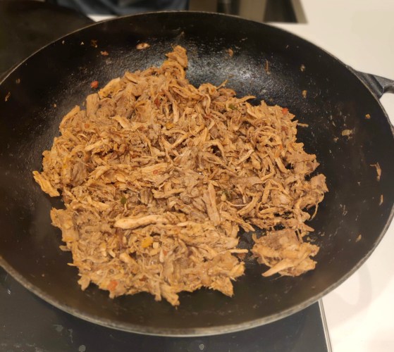 Desfiado na panela de ferro
