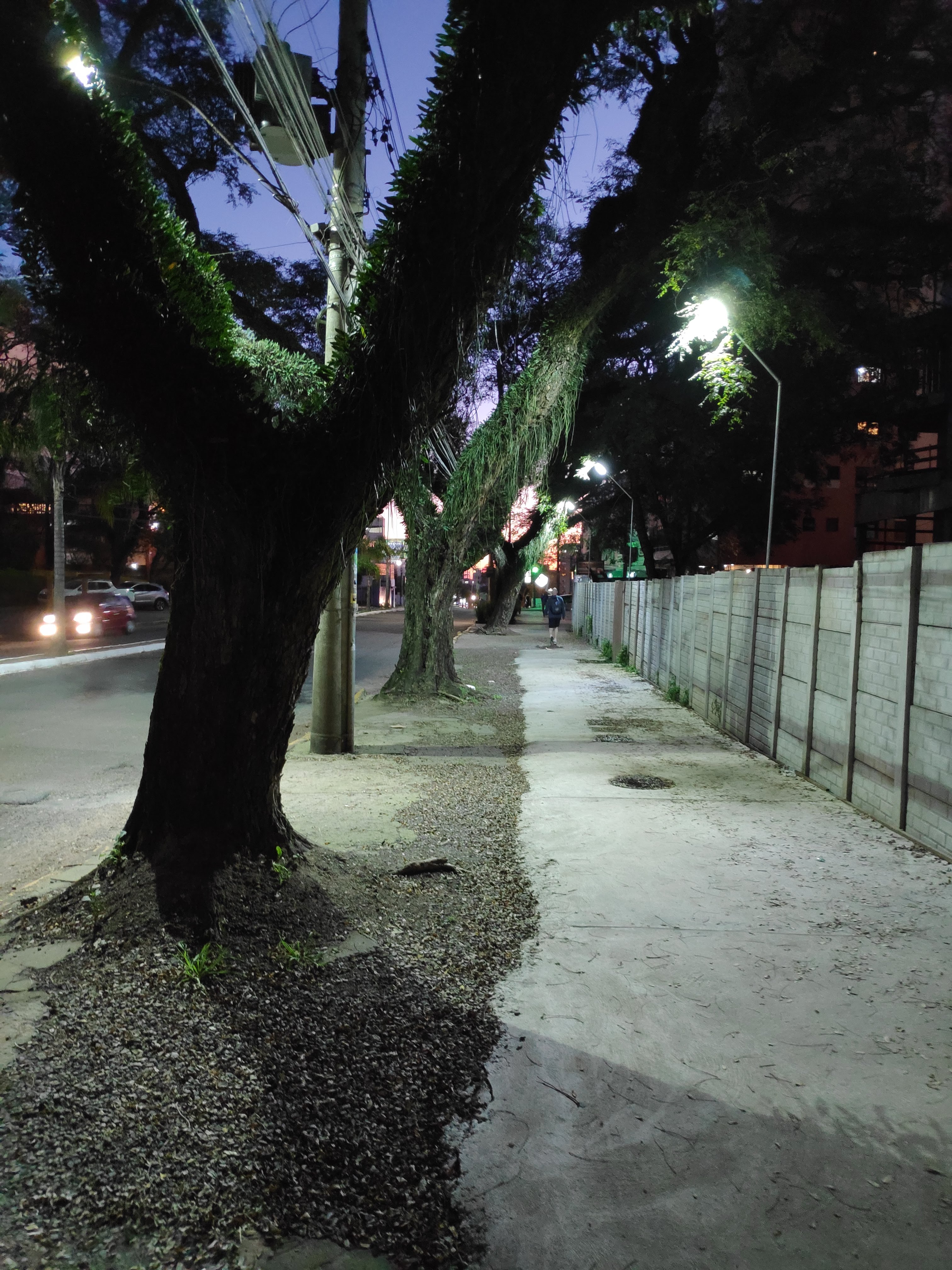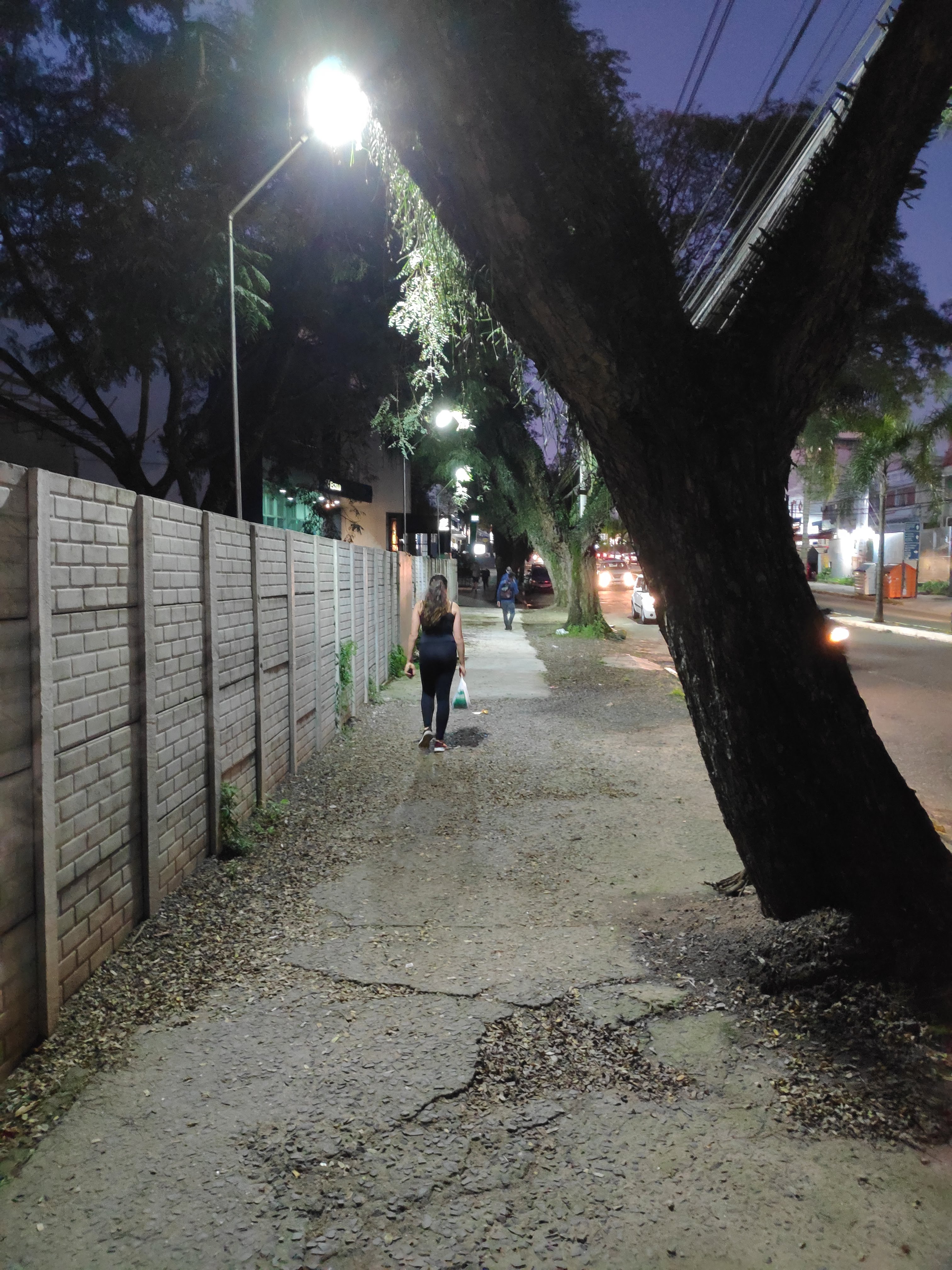 Iluminação é algo fundamental para ter uma sensação de segurança maior na cidade. Apesar disso, a iluminação pública é mais um dos investimentos que foca mais nas ruas e nos carros, iluminando justamente aqueles que possuem luz própria. Esse mal posicionamento das luminárias públicas cria penumbras e áreas escuras nas calçadas, o que é incompatível com o fluxo de pedestres. Uma cidade que quer melhorar a mobilidade e criar um ambiente urbano melhor, precisa investir em calçadas, ciclovias e iluminação pública de qualidade, é inviável achar que vamos viabilizar uma mobilidade urbana apenas através do carro. Mas acredito que não podemos esperar tudo de braços cruzados, não podemos simplesmente cobrar e não contribuir, seria muito confortável.