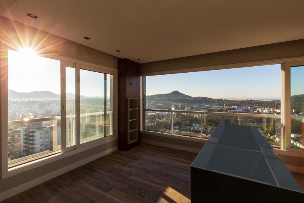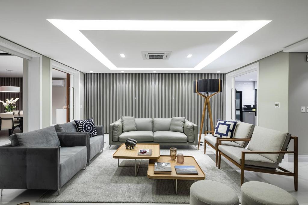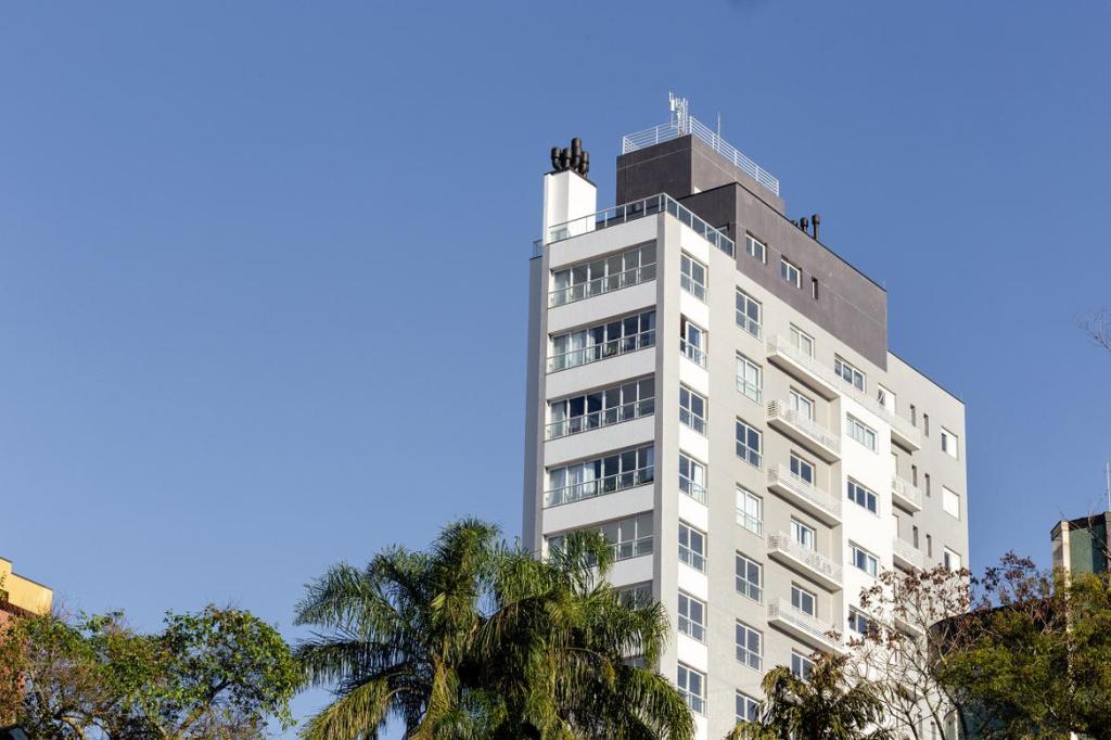 O Tom Jobim é um edifício em um travessa super em localizada, onde só existiam casas e outros edifícios com uma tipologia já bem definida, de um apartamento por pavimento. A nossa escolha foi fazer uma torre mais estreita, para podermos subir em altura, valorizando a vista e a insolação, e criando um ícone visível de vários pontos da cidade. Novamente as esquadrias são amplas e transformam o espaço gourmet em sacada, conforme a vontade do usuário. A paleta de cores é elegante e em tons de cinza.
