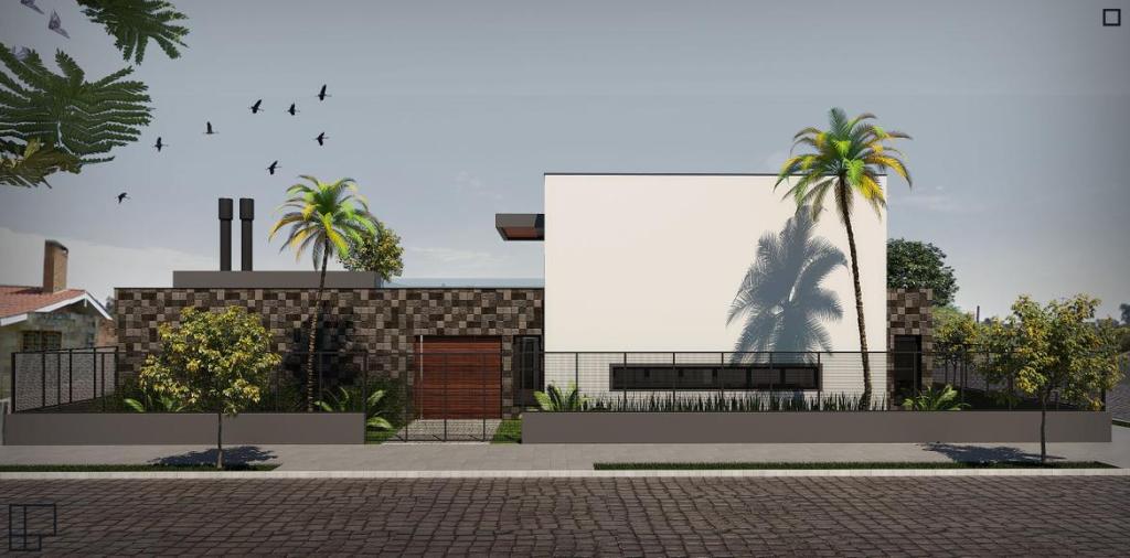 A Residência Rima fica em São Gabriel e, como uma estância, tem sua principal fachada voltada para a avenida constituída de maneira mais fechada, como um muro de pedra. Mas isso não significa desconexão com a cidade. Na rua local, onde se dá o acesso à edificação e para a qual está voltada a fachada norte, se abrem todos os quartos, aproveitando a melhor insolação. Com um formato em L, a residência tem também uma excelente conexão com o pátio onde fica a piscina, e o pátio íntimo. O acesso pela avenida principal é somente para uma área gourmet, que fica conectada ao pátio e permite a realização de uma festa mantendo a privacidade do restante da residência.