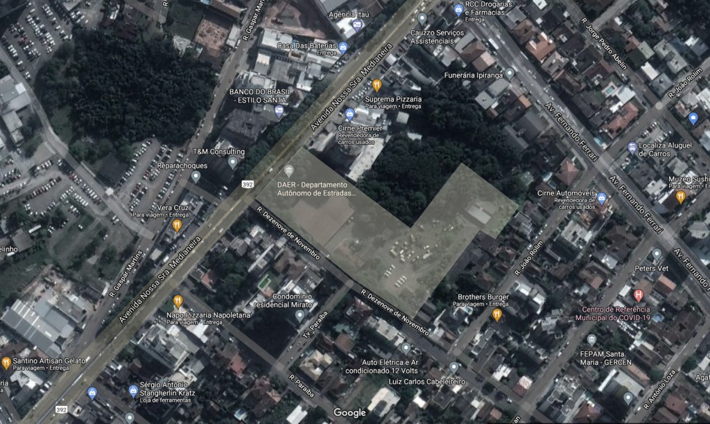O terreno do DAER é gigante, passando de 1 hectare, com mais de 60 metros de frente para a Avenida Medianeira, uma das principais avenidas da cidade, e mais de 150 metros de frente para a Rua Dezenove de Novembro. Isso tudo no Bairro Nossa Senhora de Lourdes, berço dos mais altos e valorizados apartamentos da cidade, mas ao mesmo tempo a apenas 10 minutos a pé do calçadão. O terreno já foi uma vez a Leilão, porém sem sucesso. O Governo do estado estipulou mais de 20 milhões de lance mínimo e no fim não houve negócio.