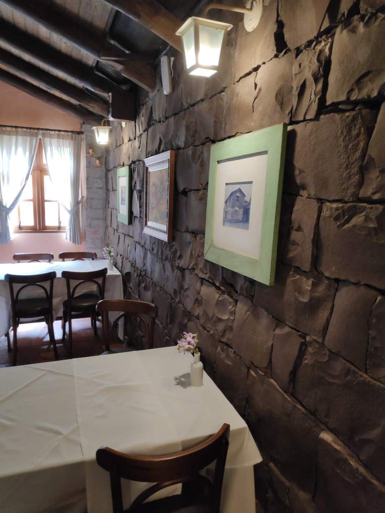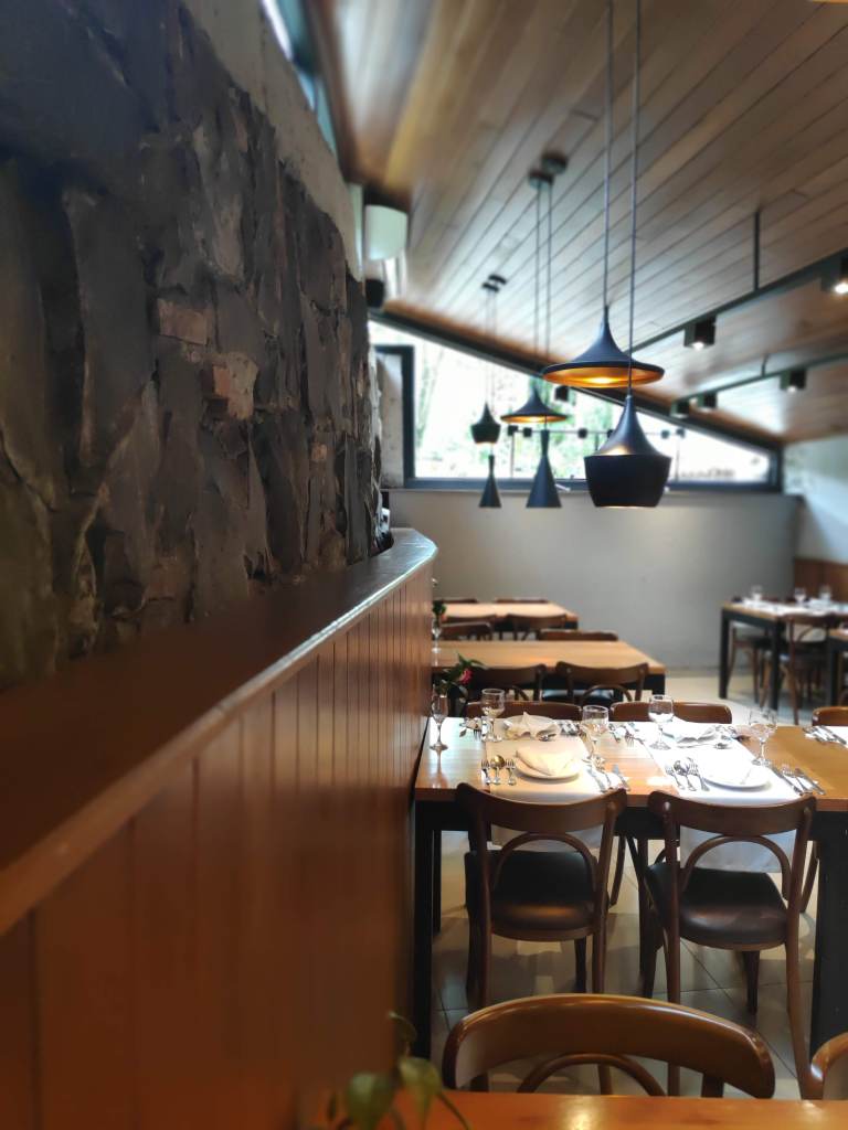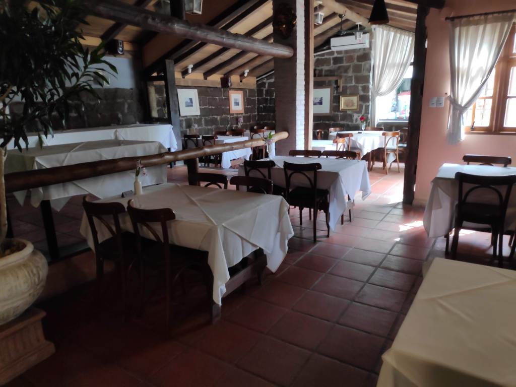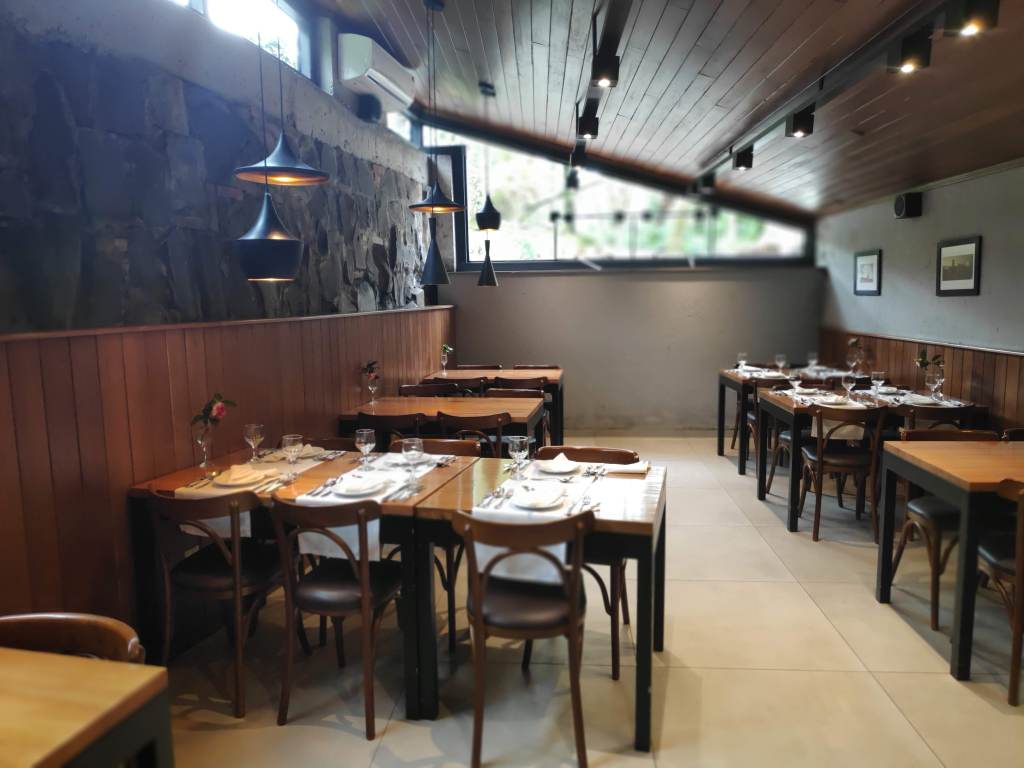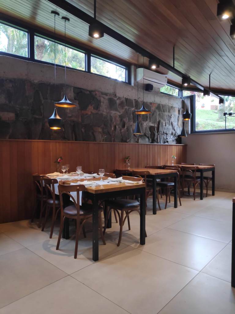 O restaurante serve à francesa, e a culinária é contemporânea, com um toque de tradição italiana, tradicional da região. Vale a pena conferir o almoço ou o jantar nos finais de semana. Você pode ver o cardápio no site deles. O restaurante fica na edificação principal, de pedra, onde também funciona a recepção da Pousada, e no que parece ser um anexo à edificação original. Este anexo também é feito de pedra, mas pelo recorte e forma de assentamento das pedras, não parece ser da mesma época da recepção.