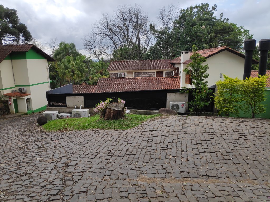 O forro, por sua vez, é inclinado, acompanhando a nova cobertura, que tem inclinação diferente da tradicional de duas águas do restante do salão. Ele foi revestido com madeira, criando o pé direito com altura variável que permite uma linha de vidro acima do muro de pedra. As janelas maiores e em linha, diferente das originais, tiram proveito do verde abundante da área externa da pousada. A união dos espaços é através do piso, que faz um corredor, saindo do acesso ao restaurante até a área nova. O piso da área antiga foi mantido, novamente indicando a área de intervenção e área original.