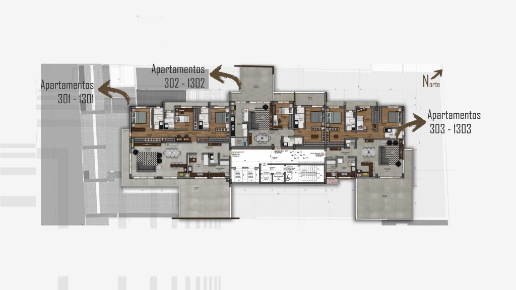 - Apartamentos de 3 dormitórios entre 119m² e 177m² privativos;