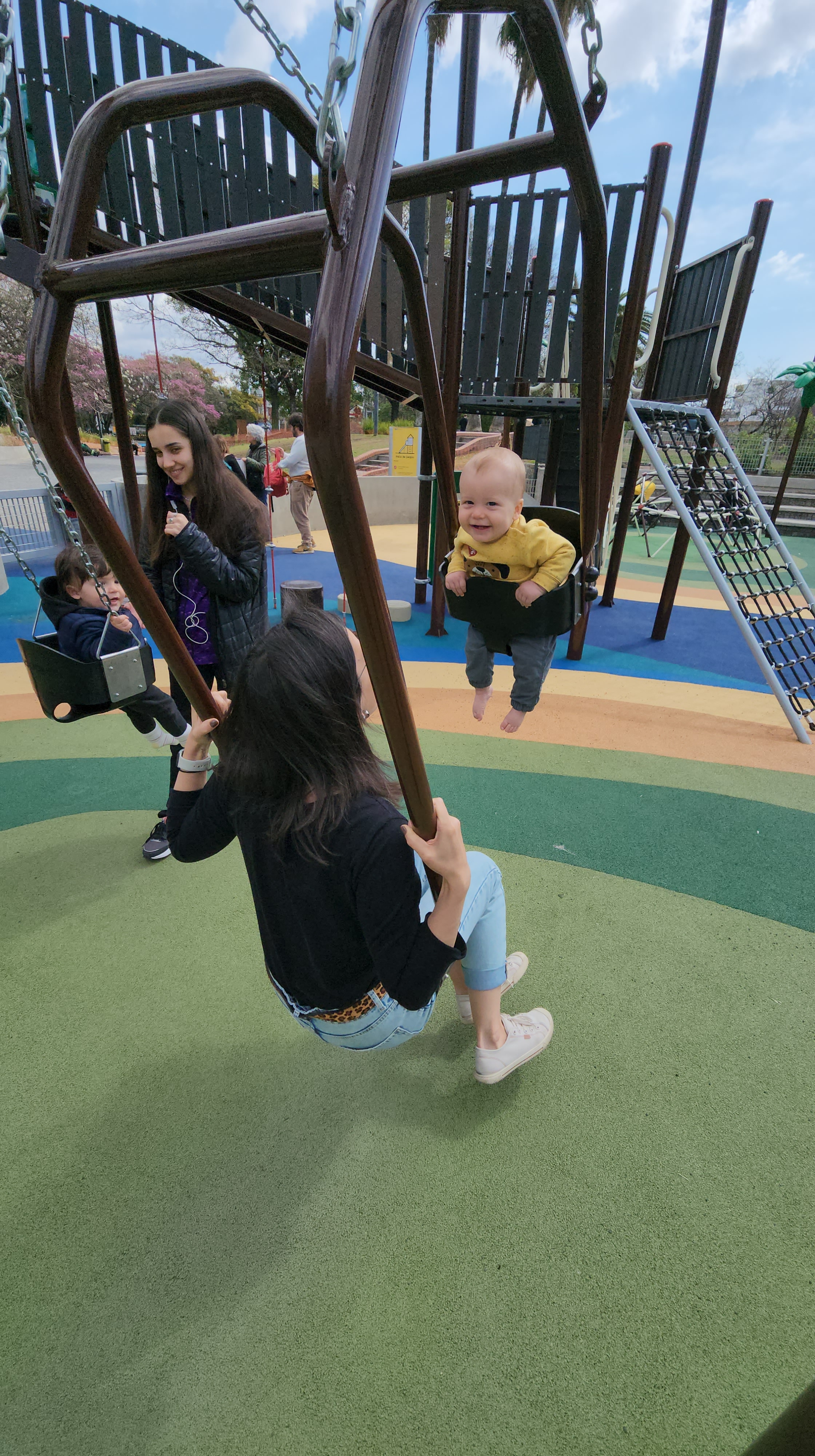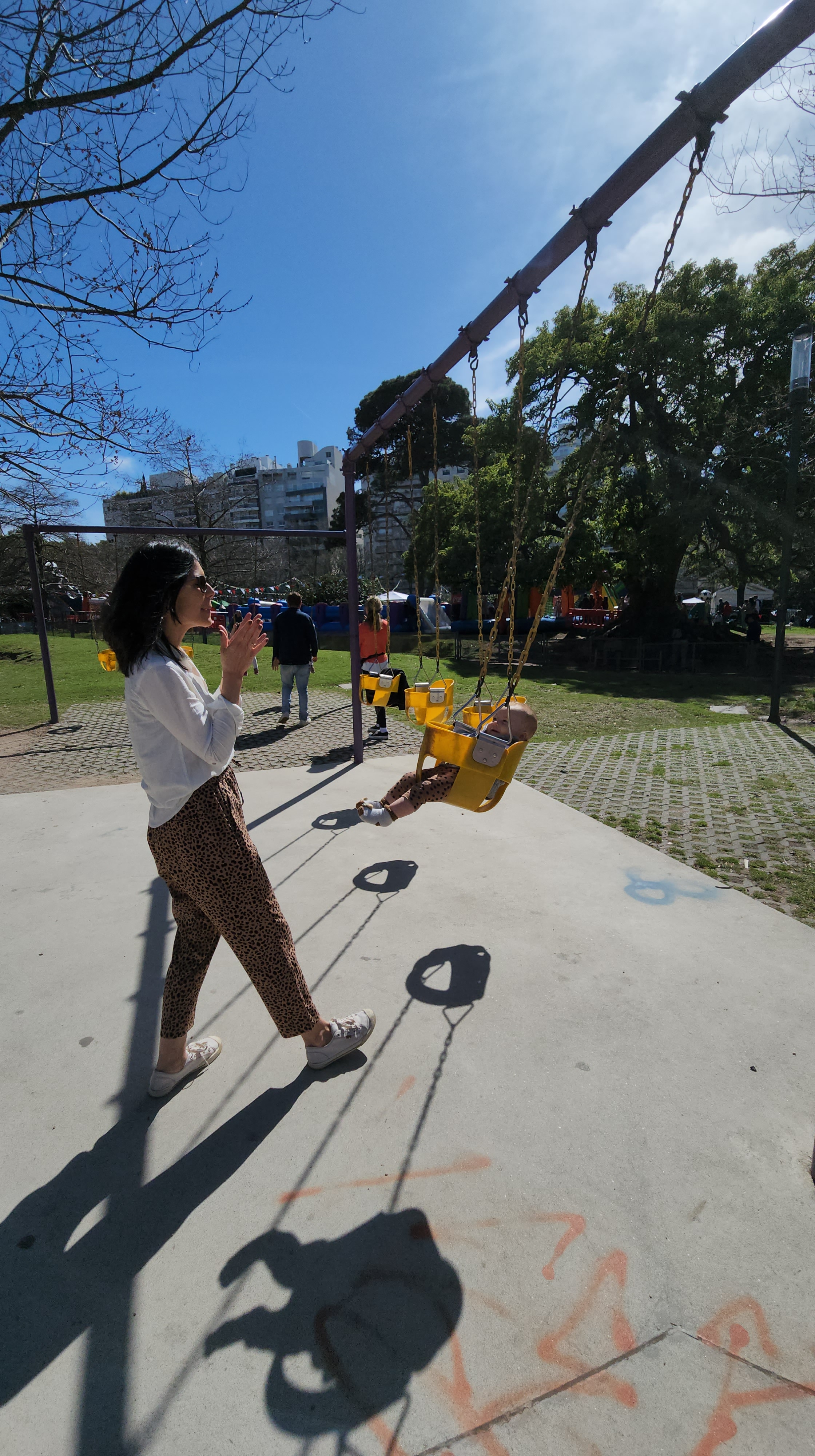 Nossas crianças se divertiram! No espaço tinha balanços com acessibilidade, escorregador que aproveitava o desnível, piso todo emborrachado, balanço para pai e filho irem de frente um ao outro, alguns brinquedos que não tinha visto no Brasil ainda. Fui fazer uma pesquisa rápida e ao que tudo indica foi a prefeitura da cidade de Buenos Aires que fez a reforma. Ou seja, mesmo em um país em crise, parece que a prioridade de investimento foi na praça, nas pessoas e na qualidade de vida urbana. E as praças, calçadas e espaços públicos continuaram de qualidade e seguros em quase todos locais que fomos. Nos sentimos mais seguros ao andar pela rua, mesmo à noite, do que em São Paulo ou Porto Alegre. A vida urbana, incentivada pela qualidade urbana, traz essa sensação.